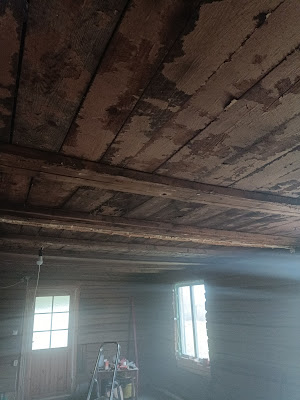 Nagu keskmiselt pildilt näeb, siis vahepeal oli meie elutuppa tekkinud ka peaaegu viiemeetriste laelaudade hunnik. Olime esialgu mõelnud kõigepealt uued laelauad paigaldada ja alles siis seina krohvima hakata, aga lõpuks tundus mõistlikum ikkagi (punase!😀) saviga tööd ära teha ja alles siis lumivalged lauad lakke panna, sest mul ei olnud küll mingit tahtmist uut lage küürima hakata. Jumal teab, palju nalja selle saviga veel saama hakkab... 😀Ja nii see lauahunnik meil seal toas risti jalus seisiski.